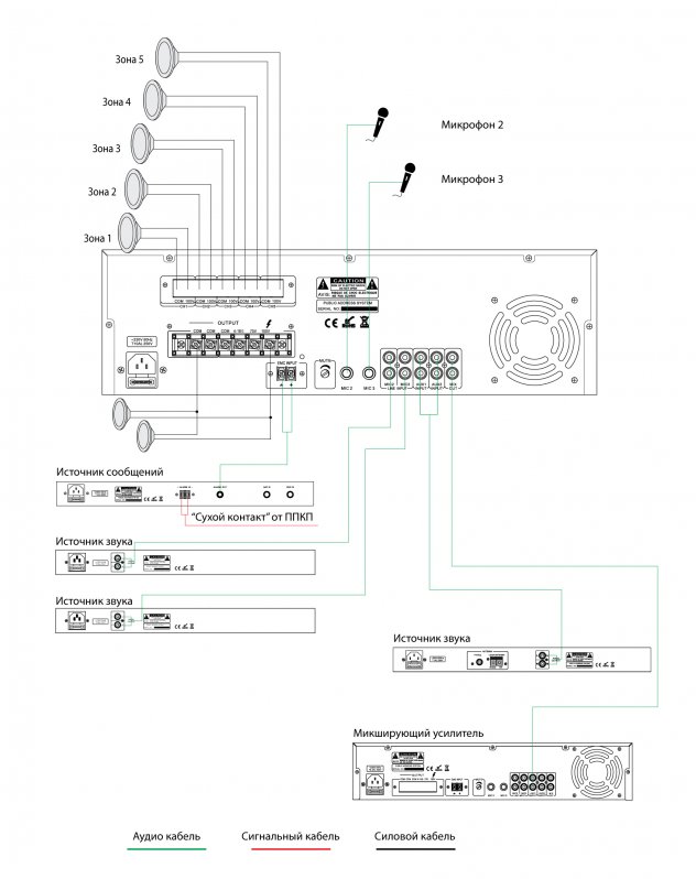 Виходи гучномовців:100 В. 70 В ~ 4-16 Ом