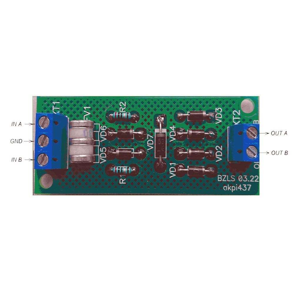 Блок захисту ліній зв’язку «БЗЛЗ» призначений для захисту інтерфейсу RS485 приладів Варта-1/832, Варта-1/832-У8 виробництва ТДВ «СКБ Електронмаш» від грозових розрядів, високовольтних наведень та сильних електромагнітних полів.Блок захисту ліній зв’язку «БЗЛЗ» забезпечує захист ліній зв’язку RS485 від наведень природного та промислового характеру.