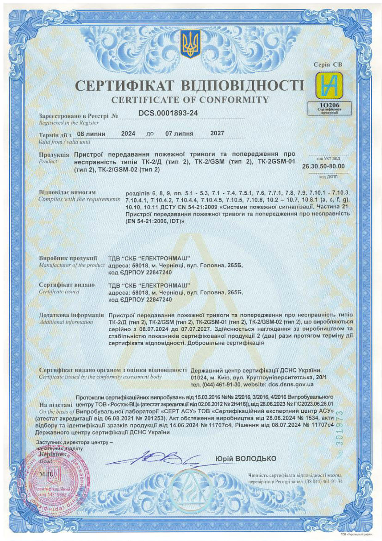 Сертифікат відповідності - Завантажити