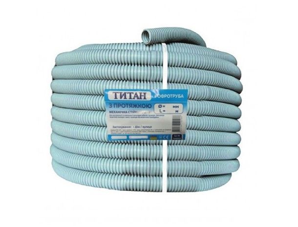 Гофрована TITAN з протяжкою d20 являє собою пластикові трубчасті канали для встановлення в них електричних кабелів, для захисту від пилу, вологи. Труба може витримати напругу струму до 1000 Вт.