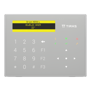 Дротова сенсорна клавіатура з контрастним OLED-дисплеєм та поверхнею із загартованого скла для керування охоронними системами Orion NOVA від українського виробника TIRAS Technologies. Призначена для постановки/зняття з охорони, перегляду стану та налаштування системи. Має банківський рівень захисту GRADE 3; підключається через RS-485 з криптозахищеним обміном; зовнішнє живлення 12В; колір білий. Гарантія 36 місяців.