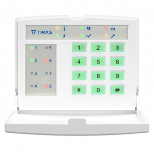 Дротова світлодіодна клавіатура для керування охоронними системами Orion NOVA від українського виробника TIRAS Technologies. Призначена для постановки/зняття з охорони, перегляду стану системи та інших базових функцій керування. Має 8 індикаторів зон; професійний рівень захисту GRADE 2; підключається через RS-485 з криптозахищеним обміном; зовнішнє живлення 12В; колір білий. Гарантія 36 місяців.