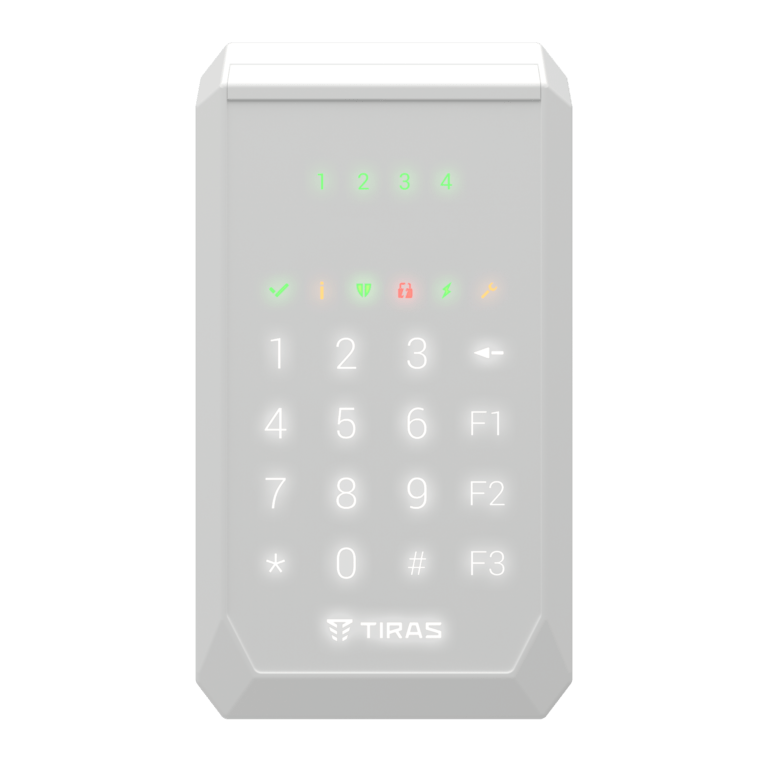 Дротова сенсорна клавіатура для керування охоронними системами Orion NOVA від українського виробника TIRAS Technologies. Призначена для постановки/зняття з охорони, перегляду стану системи та інших базових функцій керування. Має 4 індикатори зон; вбудований зчитувач NFC/Mifare; банківський рівень захисту GRADE 3; підключається через RS-485 з криптозахищеним обміном; зовнішнє живлення 12В; колір білий. Гарантія 36 місяців.