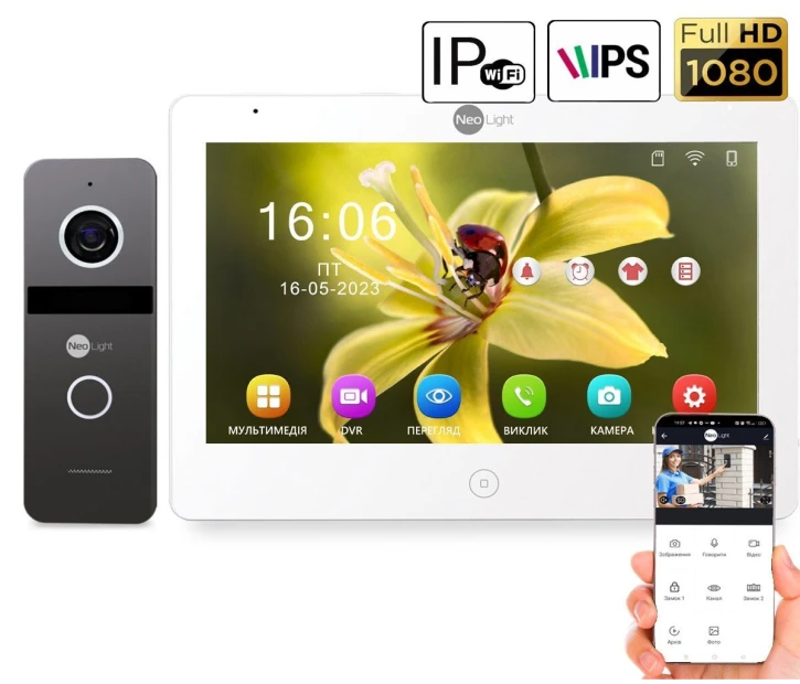 Ідеальний лаконічний дизайн з максимальними можливостями: Wi-Fi, Full HD 1080р (1920х1080), IPS екран з високою роздільною здатністю 1024 х 600, запис відео та аудіо за рухом одночасно на 4 канали, улюблена mp3 мелодія на виклик. MEZZO IPW дозволяє переадресовувати виклик з відеопанелі на мобільний додаток "NeoLight" (iOS, Android), встановлений на смартфоні або планшеті. Для коректної роботи необхідне стабільне інтернет-підключення у приміщенні, де знаходиться домофон. Для з'єднання MEZZO IPW з роутером чи з панелями виклику можна використовувати Wi-Fi або LAN з'єднання.