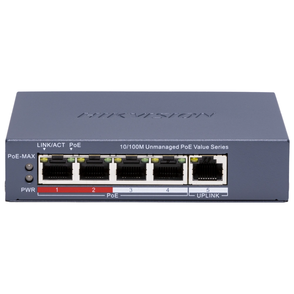 Опис Комутатор 5 портів некерований Hikvision DS-3E0105P-E/M(C) POE