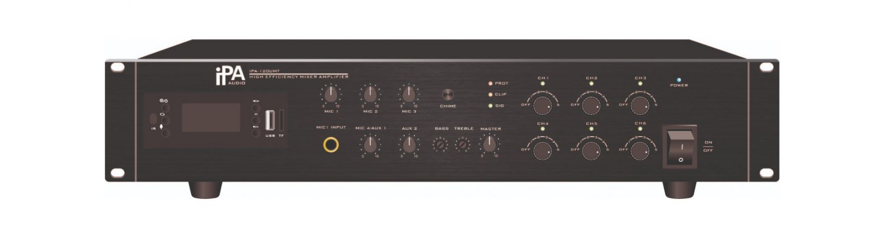 Мікшуючі підсилювачі потужністю 120 Вт, з вбудованим MP3-плеєром, роз'ємами SD та USB, а також FM тюнером. Є оптимальним рішенням для побудови бюджетних систем озвучування в магазинах, супермаркетах, ресторанах, барах, школах, заміських котеджах та інших приміщеннях, де необхідна трансляція фонової музики та голосових повідомлень.