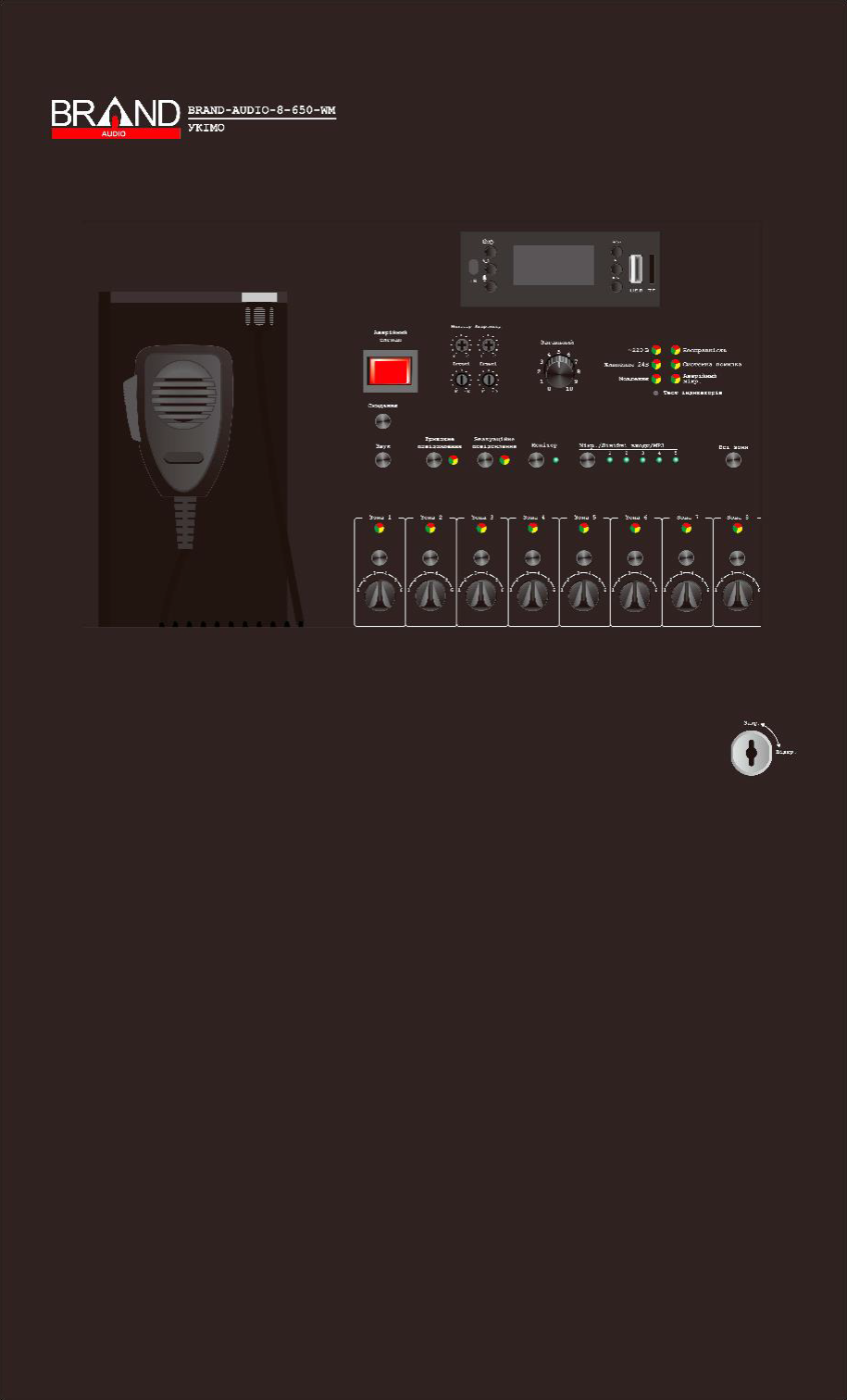 Обладнання управління та індикації мовного сповіщення BRAND-AUDIO призначене для використання в системах оповіщення про пожежу та управління евакуацією людей, системах раннього виявлення надзвичайних ситуацій та оповіщення людей у разі їх виникнення, системах озвучування та оповіщення тощо.