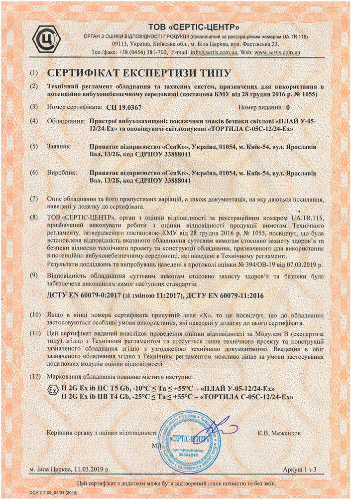 Опис Оповіщувач світловий Плай 1.1 У-05-12/24 Ex
