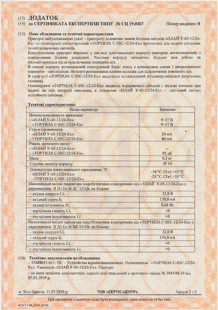 Характеристики Оповіщувач світловий Плай 1.1 У-05-12/24 Ex