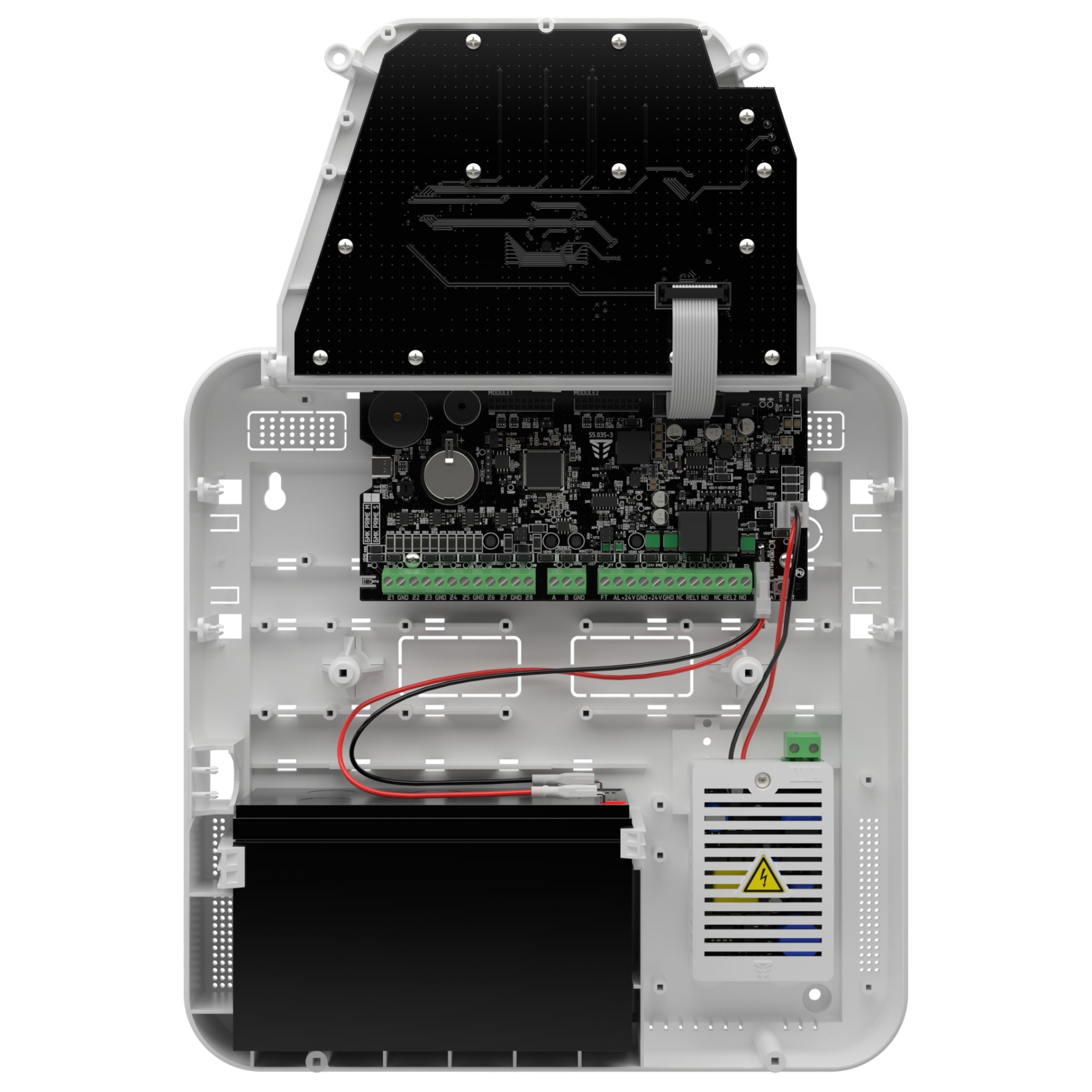 Живлення:Основне живлення: 220 В. 50 Гц, Резервне живлення: Свинцево-кислотна або LiFePO4 АКБ на 7-8 А*год, Вбудований блок живлення: 35 Вт, 2 контрольовані виходи живлення 24 В, Максимальний сумарний вихідний струм: 800 mА (2 виходи по 400 mA)
