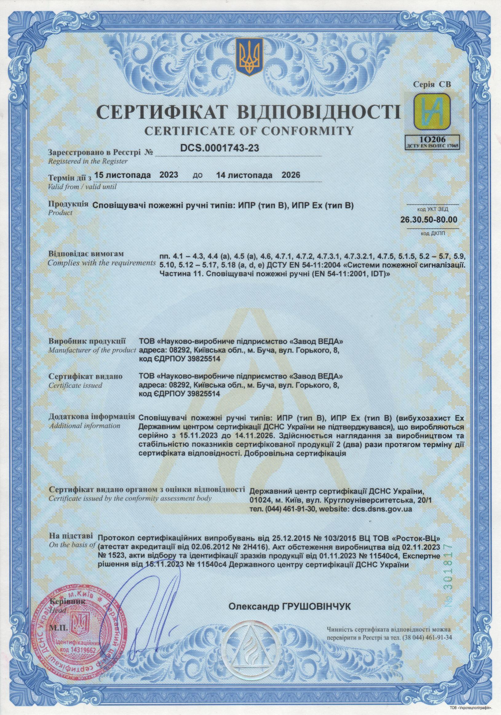 Сертифікат відповідності - Завантажити