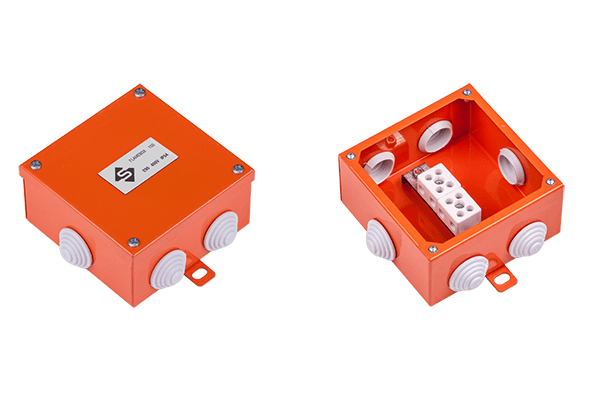 Вогнестійкі коробки FLAMEBOX слугують для з'єднання та розподілу вогнестійких кабельних ліній з функціональністю E15/E30/E60/E90. Металевий корпус пофарбований порошковою фарбою забезпечує надійний захист від механічних пошкоджень. Коробки укомплектовані керамічною клемою і сальниками для герметизації кабельних вводів.
